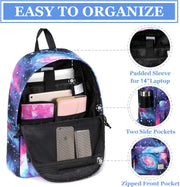 √EASY TO ORGANIZE:The basic backpack has one top-loading zippered compartment for storing the majority of your gear books and notebooks,clothes. Main zippered compartment with file divider,fully padded back and shoulder straps for ultimate comfort, front exterior easy access zipper pocket is for your pens, highlighters. Two water bottle pockets on both sides for drinks. The material of the backpack is soft and light, you could fold it in your luggage while traveling.