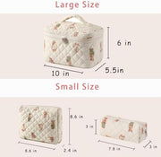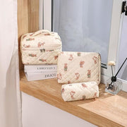 Makeup Bag, 3 Pieces Large Floral Quilted Makeup Bag Set for Women, Cotton Quilted Big Cosmetic Bag, Cute Makeup Bag Pouch Storage Bag, White Bear Pattern