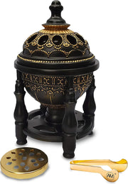 AM Charcoal Incense Burner - Bakhoor Burner, Oud Frankincense Resin Burner - for Office & Home Decor - Lavish 4 Pillar Black