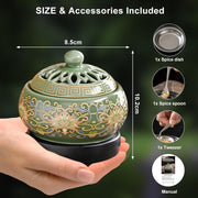 【Buy with confidence】The incense burner comes with tools including 1 incense burner, 1 tweezers, 1 spoon, and an instruction manual to make the operation more convenient and clearer. what's more,it also ensure your safety. If you have any questions, please contact us and we will give you a satisfactory answer within 24 hours.