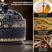 【Timing/Temperature Adjustment】The ceramic electric incense burner has timing and multi-level temperature adjustment control, which can be automatically turned off after 1-5 hours timing, ensuring your safety. It can be freely adjusted within 50°- 300℃(122-572°F) to adapt to the optimal release temperature of different spices, and has an automatic constant temperature function to obtain the best aromatherapy effect.