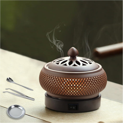 Ceramic Electric Incense Burner, Electronic Aroma Diffuser with Timing Temperature Adjustment and Cover, Resin Frankincense Burner, Used for Indoor Air Purification/Home Decoration/Meditation
