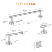 5 Pieces Wall Mounted SUS304 Stainless Steel Bathroom Towel Rack 40cm 16" Towel Rails Towel Holder, Toilet Paper Holder and Robe Hooks Bathroom Accessories Set (Bathroom Set, Brushed Finish Silver)