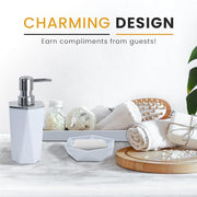 AC&L Bathroom Accessories Set, 5 Pcs Plastic Bathroom Counter Vanity Set, Liquid Soap Dispenser, Toothbrush Holder, Soap Dish, Q tips Tumbler, Vanity Tray, Modern Bathroom Decor Organizer (White)
