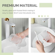 FeatureThis practical glass cup is designed to organzie electric toothbrush, toothpaste, makeup tools, razor or other item.This modern & elegant replacement for our toothbrush holder can be also used for rinsing or drinking cup.Solidly constructed of thick glass with frosted finish for durability and longevity, won't get any rust & corrode.Smooth finish coordinates well with your bathroom hardware, suitable for bathroom remodel, powder room or kitchen.SpecificationMaterial: thick glassFinish: frosted glassUse for: rinsing or drinkingNet Weight: 0.37 lb.(170g)Overall Height: 3-3/4"(96mm)Diameter: 2-3/8"(60mm) at bottom, 2-5/8"(67mm) at the topPackage IncludedFrosted glass tumbler x 1Note1. Please allow a little size error due to manual measurement.2. There may be a little color aberration due to different monitors and light influence.