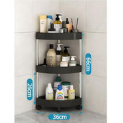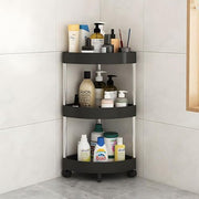 Aputue Shower Caddy Corner Shelves, 3-Tier Black Bathroom Shelving Unit Cart with Wheel, Plastic Shower Caddy Organizer Shelf, Rust Proof Corner Open Storage Cart for Bathroom, Kitchen
