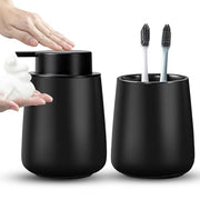 AZMOYAC Ceramic Bathroom Accessory Set 2 Pcs, Toothbrush Holder Set, Foaming Hand Soap Dispenser, Modern Home Aesthetic Bathroom Decor, Bathroom Organizer for Modern Bathrooms, Matte Black