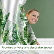 - 【Premium Fabric】Our palm leaf shower curtain is made of 100% polyester durable waterproof material, thick enough for privacy protection, good wrinkle resistance and shape retention. It prevents water from splashing outside the bath area floor and keeps your bathroom dry and clean. It also means the curtain is quick-drying, so you barely spend much time on caring.