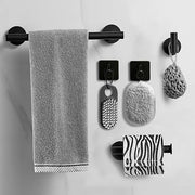 DERANQIIUA Bathroom Hardware Set, Wall Mounted Towel Rail, 5 Pieces Brushed Nickel Bathroom Accessories Set, Stainless Steel Toilet Roll Holder And Hooks (black1)