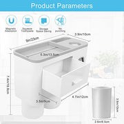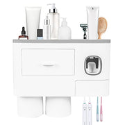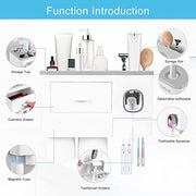 SKY-TOUCH 2 Cups Wall Mounted Toothbrush Holder, Multifunctional Space-Saving Toothbrush and Toothpaste Holder with Drawer for Cosmetics Organizer for Washroom and Bathroom