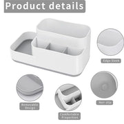 - 【Reasonable Partition 】5 varying sizes storage compartment areas, to fit various toothpaste, electric toothbrushes, toothbrushes, floss, razor, facial cleanser, moisturizers, lotions, perfume, makeup brush, scissors, shaver, comb, pen, glue, calculator, memo, remote etc. Keep your home clean and tidy.