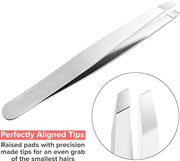 ECVV Professional Eyebrow Tweezers Stainless Steel Facial Hair Removal Tweezers with Slanted Tip for Easy Plucking Silver