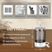 The Electric Makeup Brush Cleaner simplifies your brush care routine with hands-free cleaning and drying for multiple brushes at once. Its high-frequency vibration technology ensures thorough cleansing, reaching deep into bristles to remove trapped makeup and debris. Designed to protect your brushes, this cleaner preserves the texture and shape of bristles, making it ideal for cleaning an entire brush set. Whether you’re a makeup artist or a beauty enthusiast, this tool delivers consistent results with ease of use. Simply add water and cleaning solution, insert the brushes, and activate cleaning at the touch of a button. The compact, portable design includes built-in storage, offering a space-saving solution for home and travel use. Keep your brushes in excellent condition and streamline your beauty routine with the Electric Makeup Brush Cleaner.
