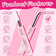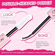 - ?2 IN 1?- Dual end lash adhesive makes your lash routine much easier, one side is bond, it has a tiny spiral brush head to help apply glue more evenly, and being as simple to use as mascara . The other side is lock, it helps form a protective layer after wearing plume individual lashes, makes the lashes maintain a longer retention.