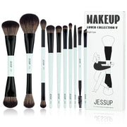 - 14-in-10 Duo-End Makeup Brush Set: Jessup versatile 10-piece makeup brush set, complete with 14 distinct brush heads, includes a variety of brushes designed specifically for your face and eyes. It's tailored to empower beauty aficionados with an extensive selection of pairing options for any look,such as natural/everyday makeup, work/professional makeup, evening makeup, soft-glam/feminine makeup, retro '60s makeup, edgy/colorful makeup, and athleisure/minimal makeup.