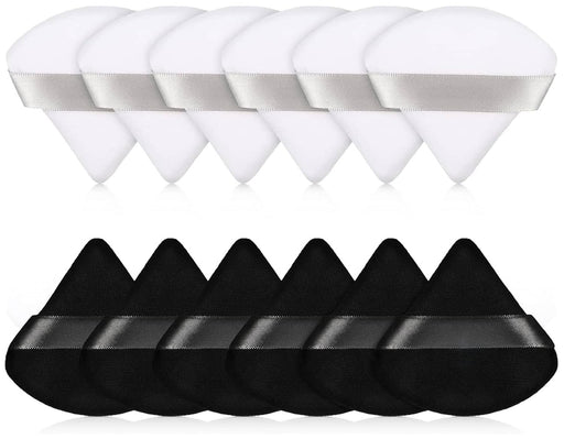 MOMENT 12 Pieces Powder Puff Face Triangle Makeup Sponge for Loose Powder Setting Powder Velour Foundation Blender Sponge Beauty Makeup Tool, Black & White