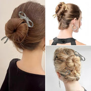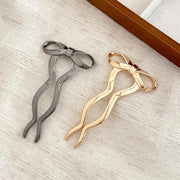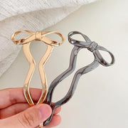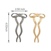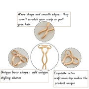 2PCS Vintage French Hair Forks for Women U Shaped Updo Metal Hair Pins for Long Thick Hair,Large Gold Bow 2 Long Prong Bun Twist Hair Sticks,Medium Hair Accessories for Women