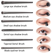 6 specialized brushes for various eye makeup techniques.