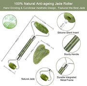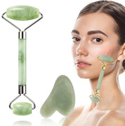 ELECDON Jade Roller for Face, Jade Roller and Gua Sha Set, 100% Real Natural Beauty Jade Facial Roller Massage Tool for Face Eyes Neck Body, for Reduces Eyes Puffiness Removes Wrinkles Skin Tightening