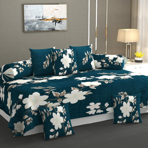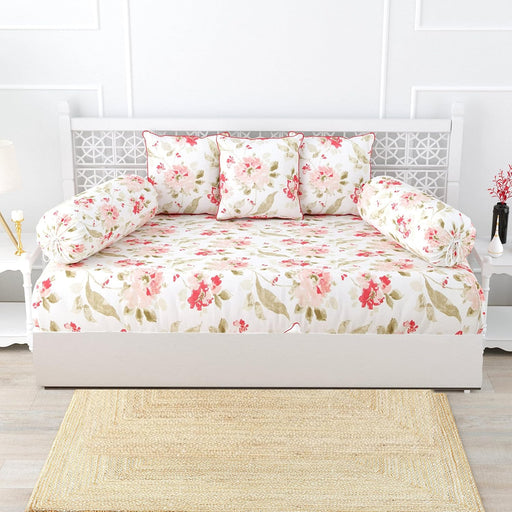 Extensive Set: This diwan cover set includes 1 single bedsheet (150 x 228 cm), 5 pillow covers (40 x 40 cm), and 2 bolster covers (40 x 81 cm).Prem...