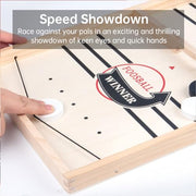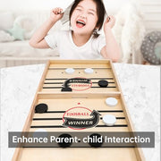 - 【Portable & Durable】: Crafted with a solid wood frame and wooden play pieces, this game board is made of high-quality wood. Its design allows it to store all the ice hockey pucks after play, making it easy to carry and play anywhere.