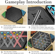Moonmen Chain Triangle Chess, 2 to 4 Players Desktop Puzzle Interactive Game for Kids, Rubber Band Board Game for Family Fun and Strategy Play