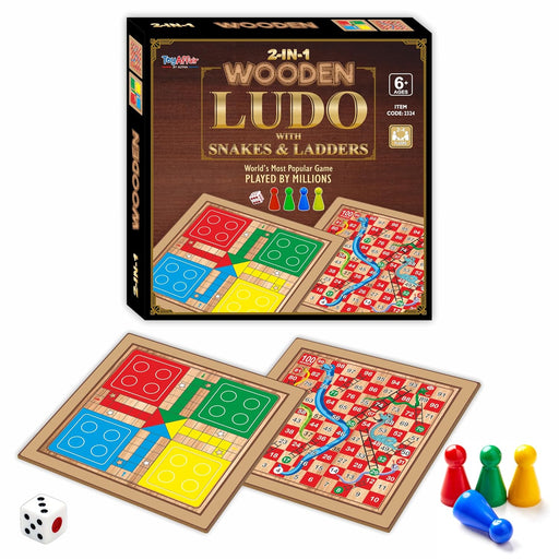 View full detailsAnkit Toys & Games 2in1 Wooden Ludo with Snakes & Ladders Game Set– Classic Family Board Games for Kids & Adults, Double-Sided Board with Colourful Pawns, Ideal for Indoor Entertainment & Gift Idea