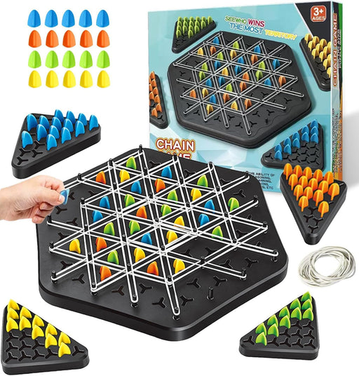 View full detailsMoonmen Chain Triangle Chess, 2 to 4 Players Desktop Puzzle Interactive Game for Kids, Rubber Band Board Game for Family Fun and Strategy Play