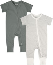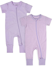 Teach Leanbh Baby Boys Girls 2-Pack Romper Jumpsuits Cotton 2 Way Zipper Short Sleeve Footless Sleep and Play 3-24 Months