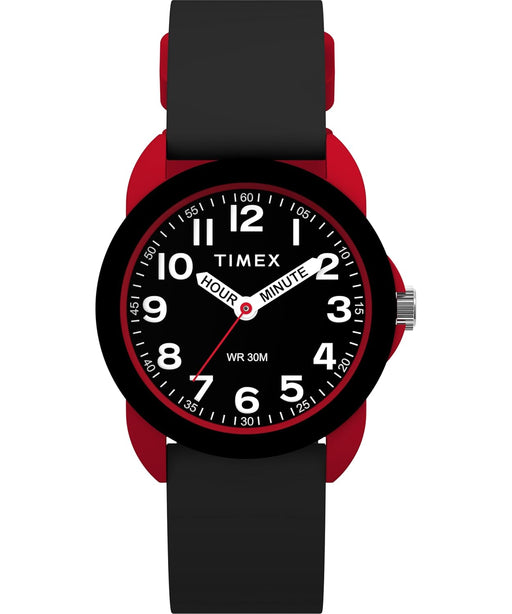 Timex Kids Time Machines 30 mm Watch, Black Silicone Strap Black Dial Red Case TW2W91900, Red, strap