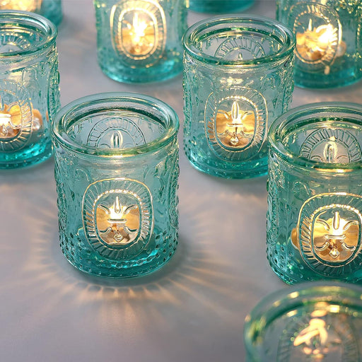 TERRIFI Vintage Blue Glass Tealight & Votive Candle Holders (Set of 12), Farmhouse Decor, Room Decoration, Shelf Decor