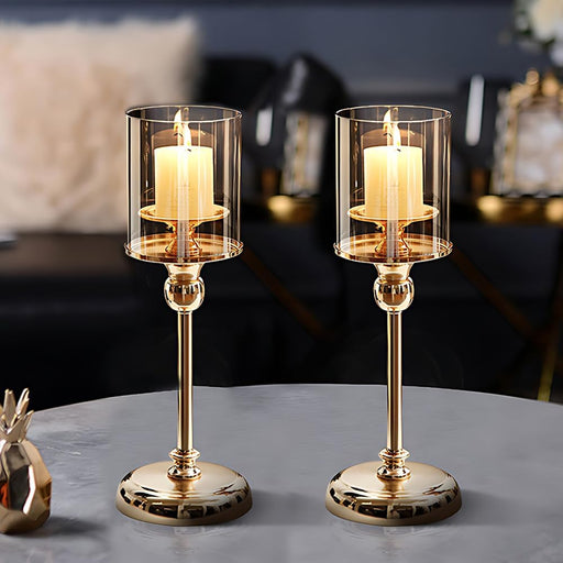 Uoexziyi Candlestick Holders,Vintage Glass Candles Holders with Glass Cover,Warm Accent Display Table Candle Holders Centerpieces for Home,Wedding,Candlelight Dinner Decoration (2 Pack)