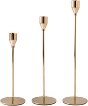 Candlestick Luxury Holder, 3PC's of holders for Party, Wedding, Dinner DECORATIVE metal Gold for tapper candles for Table, Mantel, Wedding, Dinning, Housewarming Gift