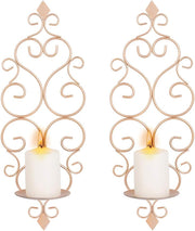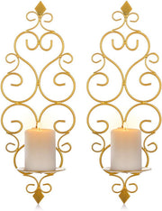 Sziqiqi Wall Candle Sconce Holder Set of 2 Hanging Wall Mounted Pillar Candle Sconces Holder, Wall Sconces Decor for Bedroom Dining Room Living Room Bathroom (Gold)