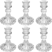 THE WHITE SHOP 6PCS Glass Candle Holder, Clear Candlestick Holder & Taper Candle Holder for Wedding Party Table, Spring Decor, Anniversary, Dining Room Table, Valentine's Day, (Clear)-A-6Pcs