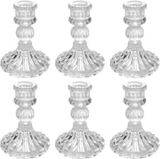 Tyasdery Glass Candle Holder, Clear Taper Candle Candlestick Holder for Wedding Party Table, Spring Decor, Anniversary, Festival Decoration, Dining Room Table, Valentine's Day, Set of 6