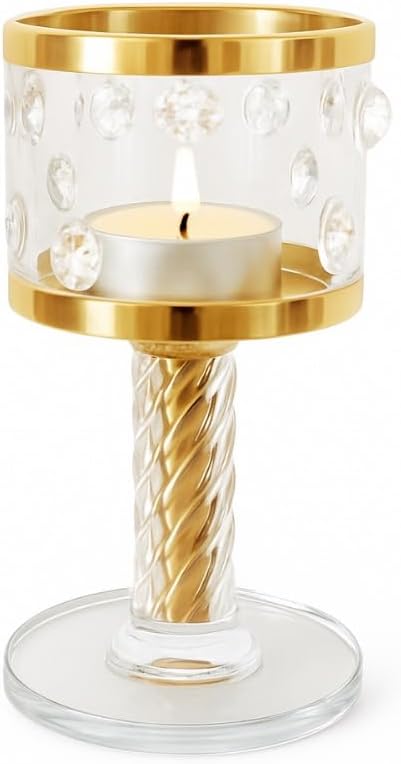 Luxurious Crystal & Gold Finish Elevate your home decor instantly with this stunning crystal glass candle holder featuring a rich gold finish t...