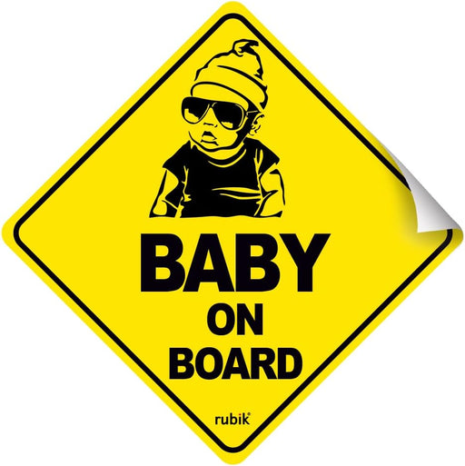 Rubik Baby on Board Car Sign with Suction Cup for Car Rear Window, Vehicle Kids Car Safety Warning Sign (12x12cm)