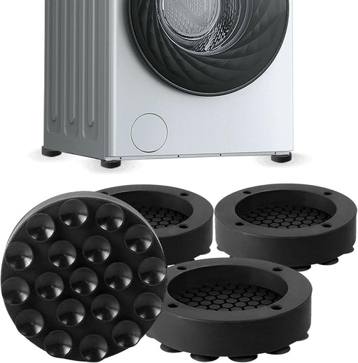 Washer Dryer Anti Vibration Pads, 4 Pcs Noise Cancelling Washing Machine Support with Suction Cup Feet, Fridge Leveling Feet, Anti Walk Pads Shock Absorber, Protects Laundry Room Floors, Black