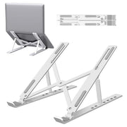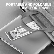 - [Portable and Foldable] This adjustable laptop stand is made of ABS material, is lightweight and can quickly fold into a small size, and comes with a portable storage bag to make it easy to carry. This portable laptop riser is perfect for desk work, home, school, office, or travel.