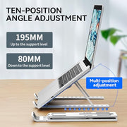 - [Adjustable & Ergonomic] This foldable notebook riser elevates your notebook from 3.14" to 7.87" height for a perfect eye level, and there are 13 adjustable angles and heights for you to choose from, letting you fix posture and reduce your neck fatigue, and back pain, and eye strain. Very comfortable for working in home, office, and outdoors.