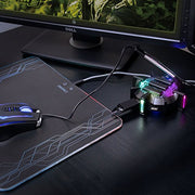 Featuring 4 USB 2.0 Ports, the Pro Bungee is an all in one gaming desktop companion. Switch between keyboards, mice, headsets, and access external drives from your new desktop hub. No more getting underneath your desk or twisting yourself to reach the USB ports behind your case. ENHANCE your game.