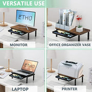 ETHU Monitor Stand Riser, 3 Height Adjustable Monitor Stand with Storage Drawer Desk Organizer Ergonomic Stand for Computer Printer Laptop PC iMac Black