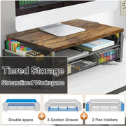 gianotter Monitor Stand Riser, Desk Organizer with Drawer and Pen Holder, 2-Tier Computer Stand, Office Desk Accessories, Office Organization (Wood)