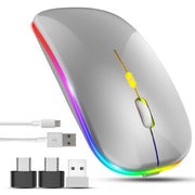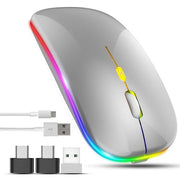 GraGra Wireless Rechargeable Bluetooth Mouse for Laptop, 2.4 GHz With 2 USB A to C Adapters, 3 Buttons, 800-2400 DPI, Computer Accessories