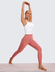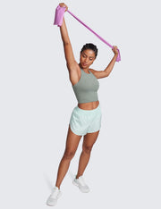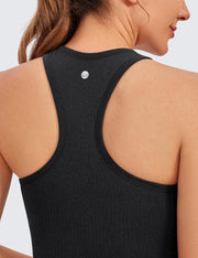 CRZ YOGA Womens Seamless Ribbed Longline High Neck Sports Bra - Racerback Padded Slim Fit Crop Tank Top with Built in Bra