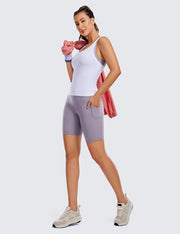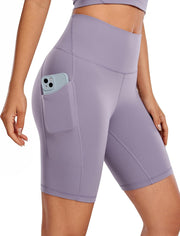 CRZ YOGA Women's Butterluxe Biker Shorts 8 Inches - High Waisted Yoga Shorts Side Pockets Buttery Soft