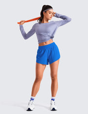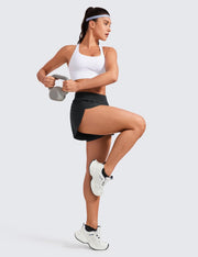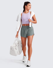 CRZ YOGA Mid Waisted Dolphin Athletic Shorts for Women Lightweight High Split Gym Workout Shorts with Liner Quick Dry