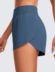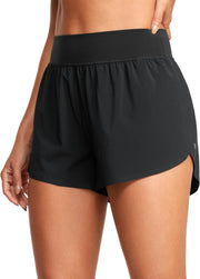 CRZ YOGA High Waisted Dolphin Athletic Running Shorts for Women 3" High Split Comfy Mesh Liner Gym Workout Track Shorts