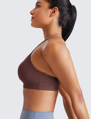 CRZ YOGA Y Back Sports Bra for Women - Padded Racerback Spaghetti Straps Thin Strap Low Impact Workout Yoga Bra